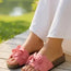 Die Fiona | Damen-Klappen mit Blumenapplikation verbinden Komfort mit verspieltem Design und bringen frischen Charme in jeden Schritt. Ideal für warme Tage, Gartenpartys oder entspannte Spaziergänge.