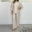Das Greicy | Set aus fließendem Oberteil und weit geschnittener Hose kombiniert zeitlose Eleganz mit einem entspannten, modernen Schnitt. Ideal für den Alltag, entspannte Wochenenden oder elegante Sommerabende – dieses Set sorgt für einen stilvollen, aber zugleich bequemen Look.
