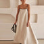 Das Euna | Zeitlose lange Kleid mit zarten Trägern vereint schlichte Schönheit mit einem Hauch von Raffinesse. Die zarten Träger und der fließende Schnitt verleihen dem Kleid eine feminine Ausstrahlung, die sowohl für elegante Anlässe als auch für entspannte Sommerabende perfekt geeignet ist. Der zeitlose Look und die bequeme Passform machen es zu einem vielseitigen Piece in jeder Garderobe.