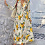 Florales Design – Ein lebendiges, blumiges Muster, das dem Kleid eine frische und romantische Ausstrahlung verleiht.